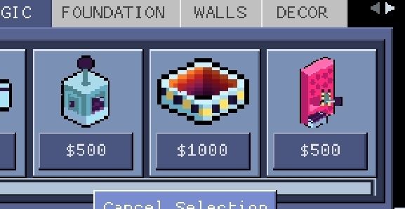 The hammer buttons opens a menu, but only the "Decor" and "Helpers" tab actually let you click on items, the others don't register the click